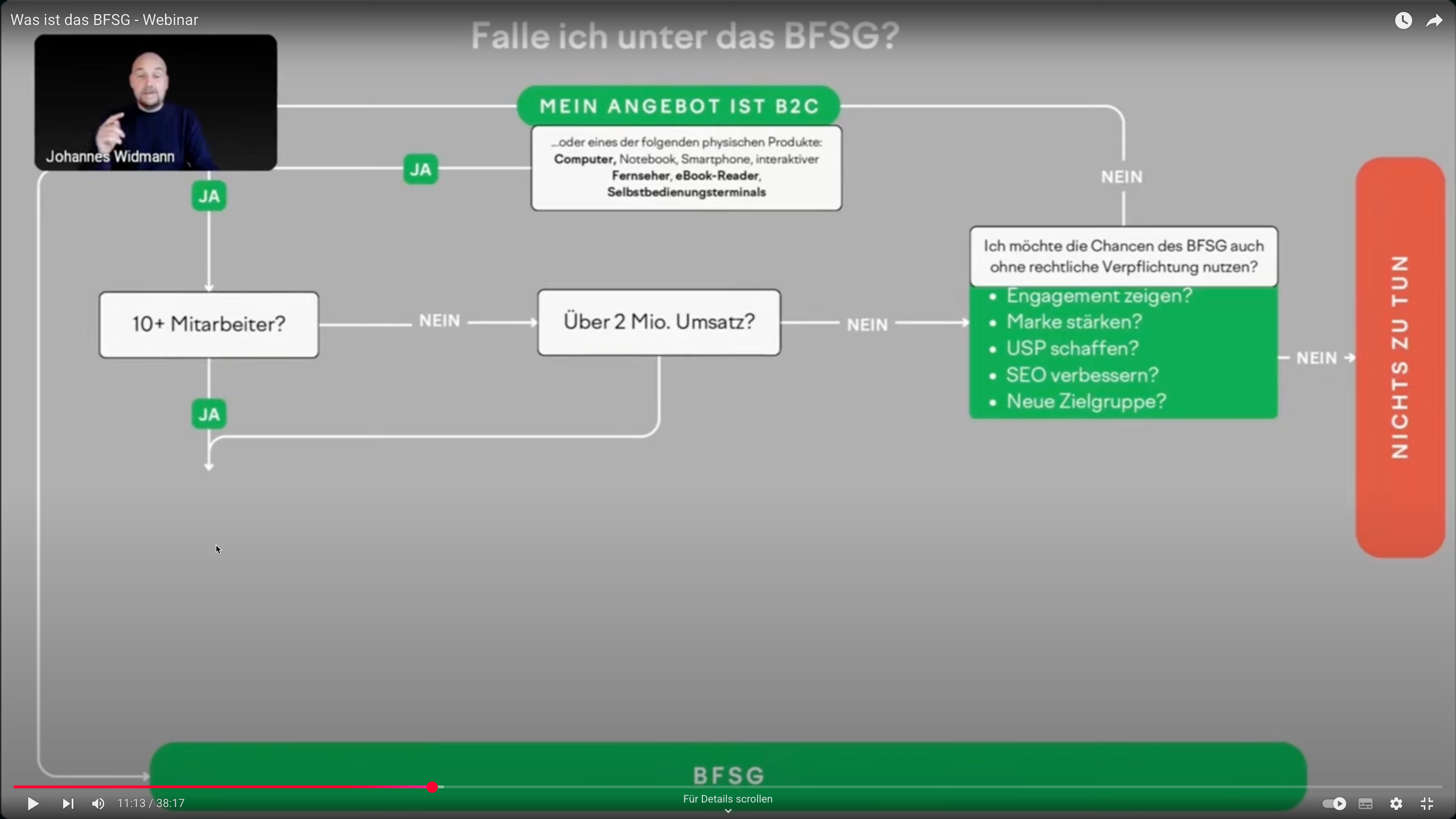 Das Webinar erklärt, was hinter dem Barrierefreiheitsstärkungsgesetz (BFSG) steckt – verständlich, praxisnah und speziell für Dienstleister mit Website-Bezug. Du erfährst, warum das Gesetz kommt, was genau verlangt wird und wie du dich rechtzeitig darauf vorbereiten kannst. Im Anschluss beantworten wir offene Fragen per E-Mail – ganz ohne Fachchinesisch, aber mit klarem Plan.